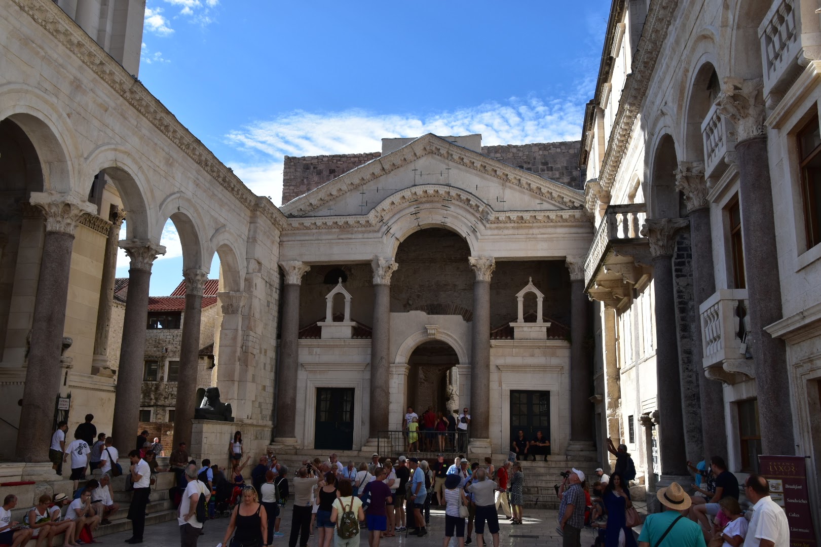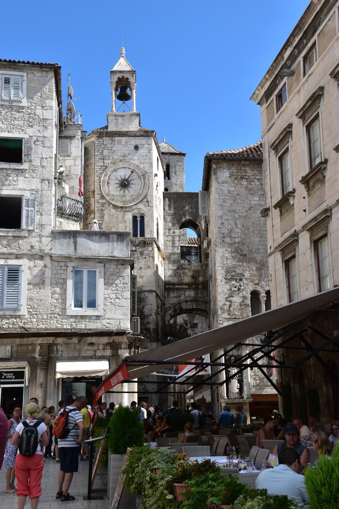 1. Diocletian’s Palace – so this is the cool thing about Split. Diocletian’s Palace is not really a palace in the way you might think of them, a single building you need to pay an entrance fee for that has been preserved as a tourist site. It’s actually a whole complex, a city really. Three thousand people live within the palace walls, there are 220 buildings. You are not just visiting the place Emperor Diocletian built to retire after he abdicated from the Roman Empire at the turn of the 4th century, it’s the heart of the city. Within the fortress walls are narrow streets, courtyards, washing hanging out, bars, restaurants. It’s easy to think of the Palace as just the main square, but it encompasses the whole area within the walls. The models showing how it was originally built and the additions over the centuries help to envision it all – now and then.